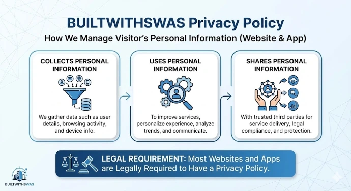 BuiltwithSWAS privacy policy states how our website or app collects, uses, and shares visitor's personal information. Most websites and apps are legally required to have a privacy policy.